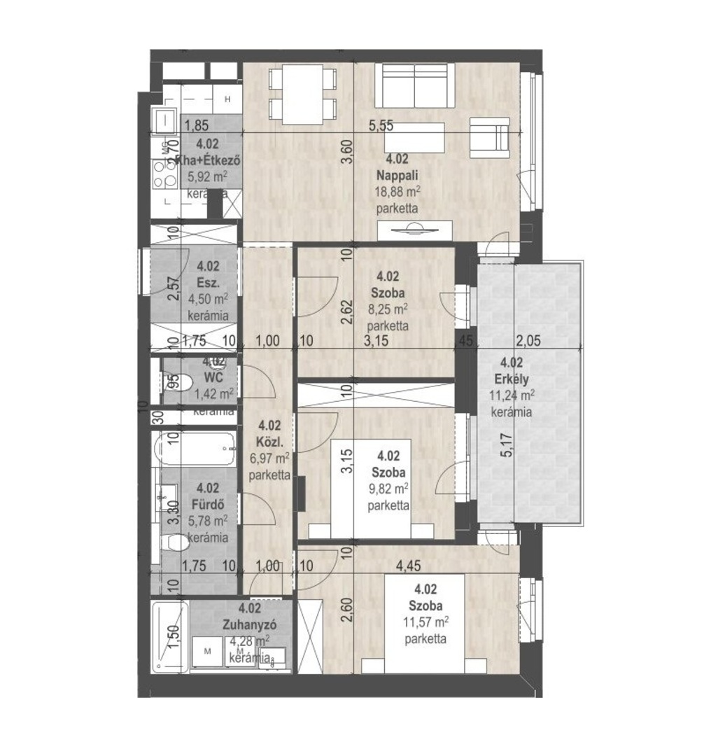 4 szoba