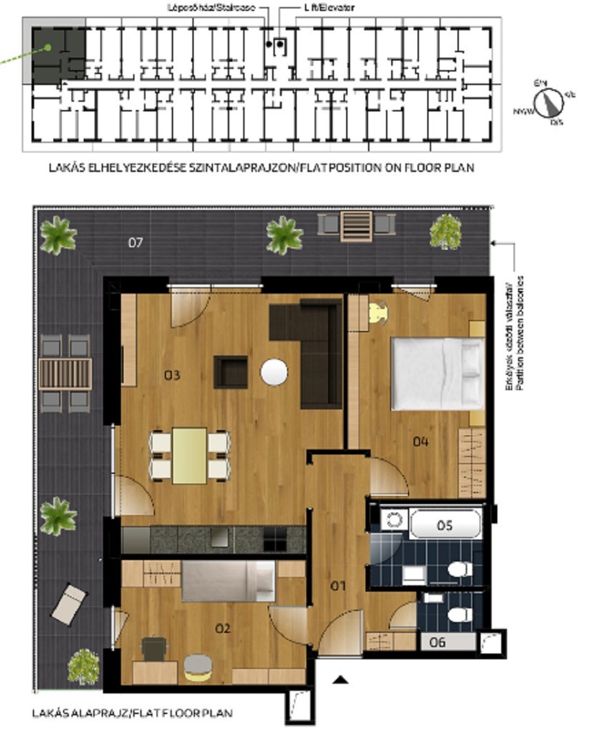 Kerthelyiséggel rendelkező lakások, erkélyes lakások és a penthouse szinten tágas tetőteraszos lakások